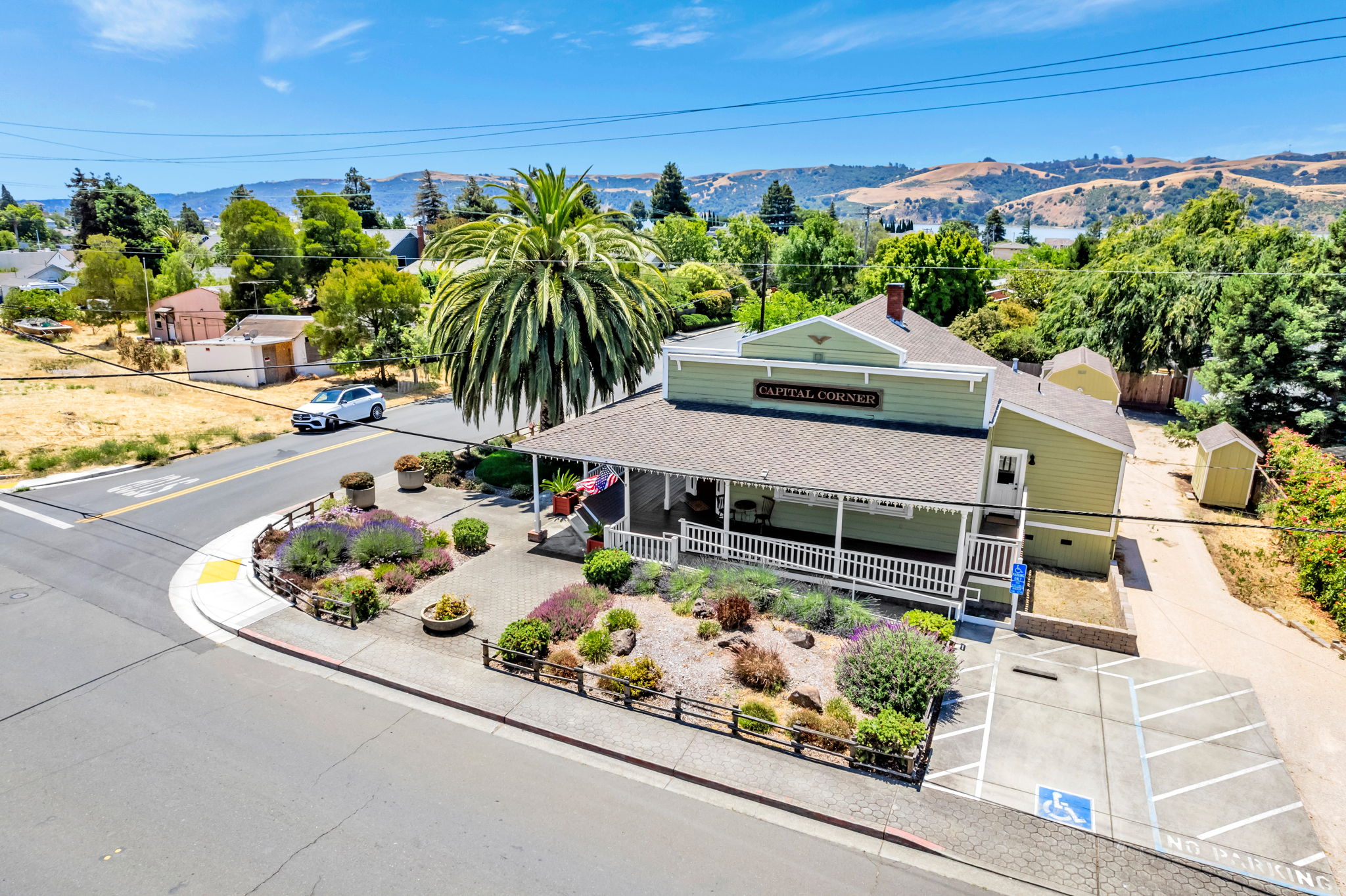 A Historic Freestanding, Charming Storefront - Zoned Community Commercial (CC) allowing a variety of uses including: professional office, medical, dental, retail, cafe, restaurant, limited live-work use or possibly a day care. Grand interior space with cathedral ceilings, 3 private offices, 1.5 bathrooms, a kitchen, common space and grand windows. 1,226 sqft interior with 865sf wrap around porch. Premium corner lot of 9,374 sf provides future development opportunity.